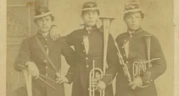 John Shalla (1848-1904) was a drummer boy in Company D. He's shown here on the left with post-war bandmates, about 1873.