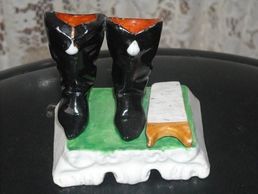 The ceramic cigar-and-match holder that family tradition says Goben returned home with from his Army duty.